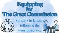 For the four Sundays in January, the Bible study time following the worship service will be focused on equipping people to reach, equip, and send - fulfilling the Great Commission. Th Learn More